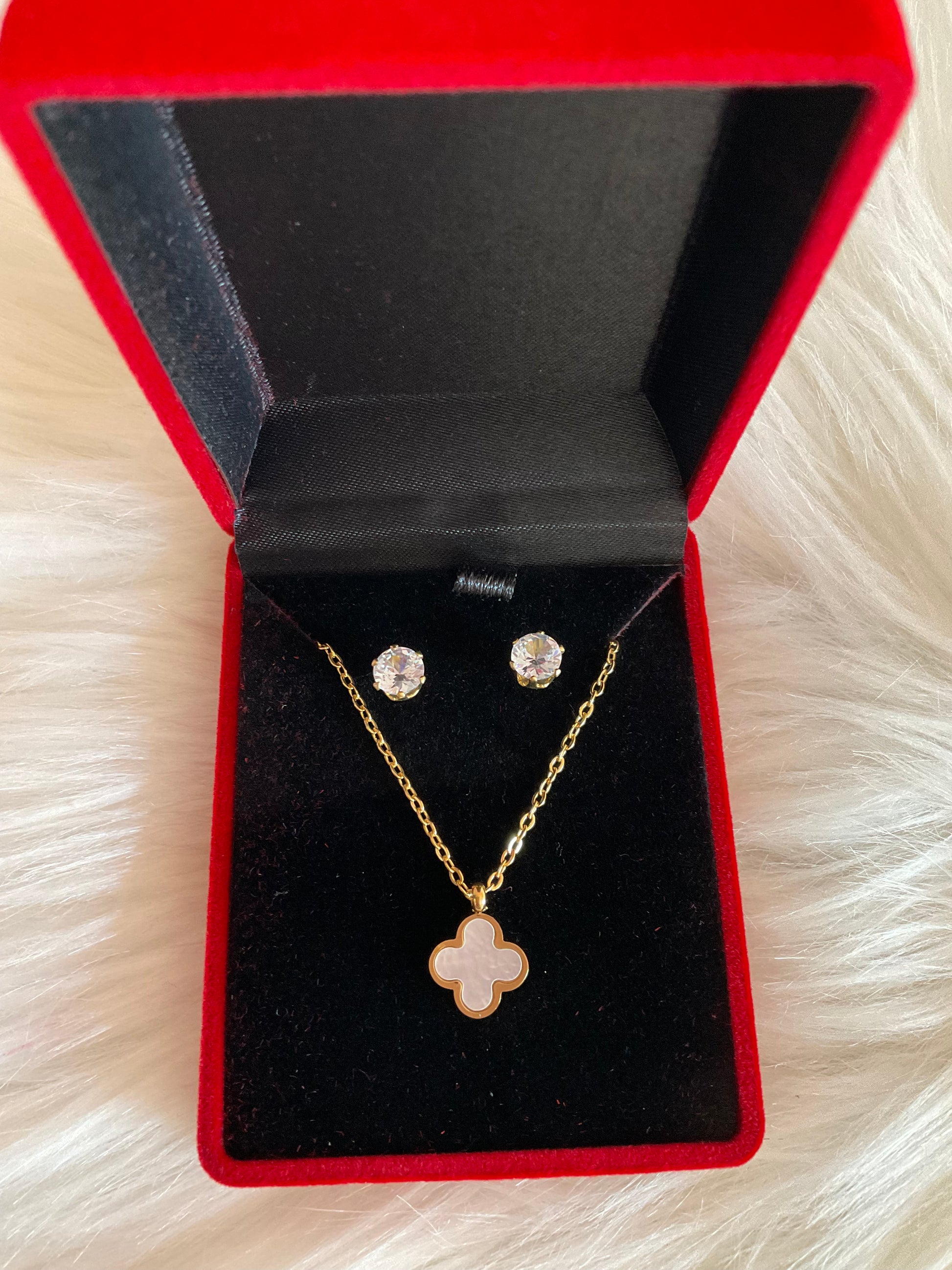 Coffret acier inoxydable collier boucle d’oreilles fleur pétale avec perle